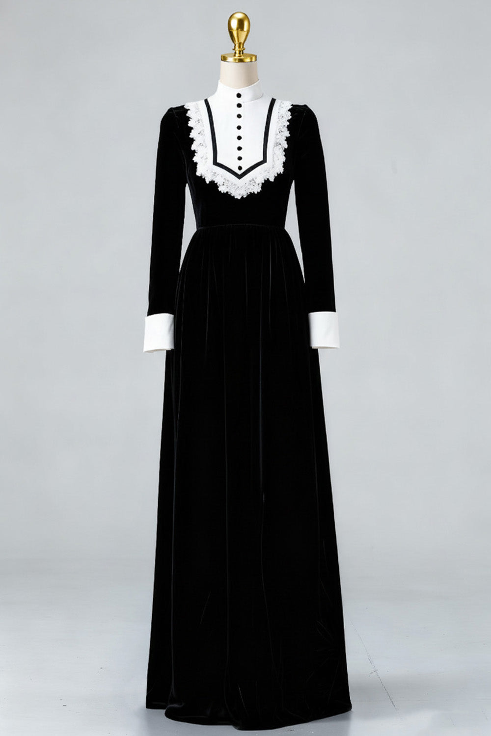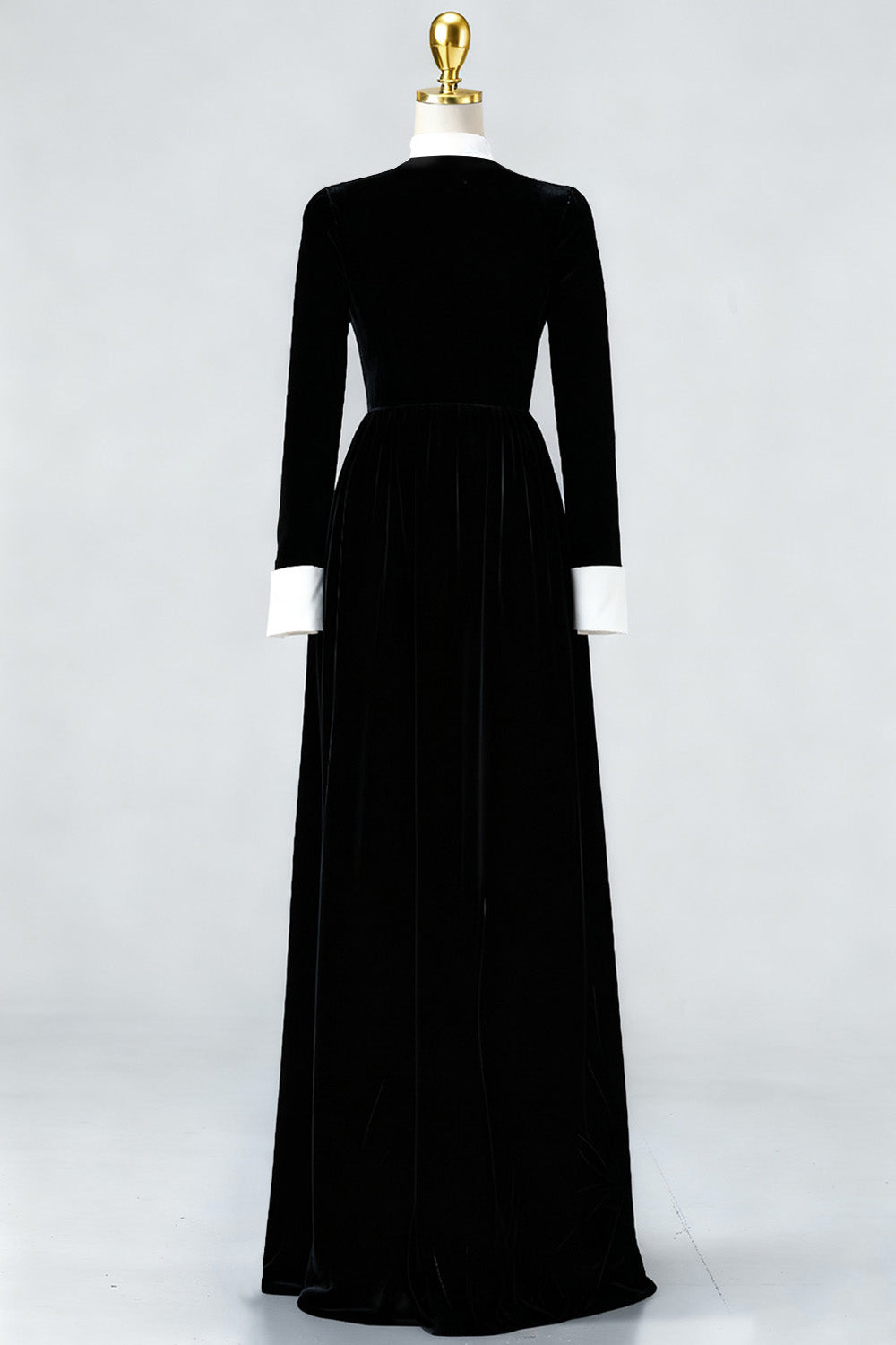 This elegant maxi dress in sumptuous black and white velvet features a refined button-front detail. The timeless silhouette flows into a graceful floor-length hem, creating a striking look perfect for a gala, red carpet event, or a formal black-tie occasion. Its classic colour combination and luxurious fabric ensure a memorable and polished statement at any evening affair.
