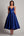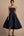 Navy Satin A Line Strapless Midi Wedding Guest Dress