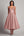 Pink Satin V Neck A Line Midi Wedding Guest Dress with Bow