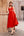 Red V-Neck A Line Maxi Floral Work Dress with Sleeves