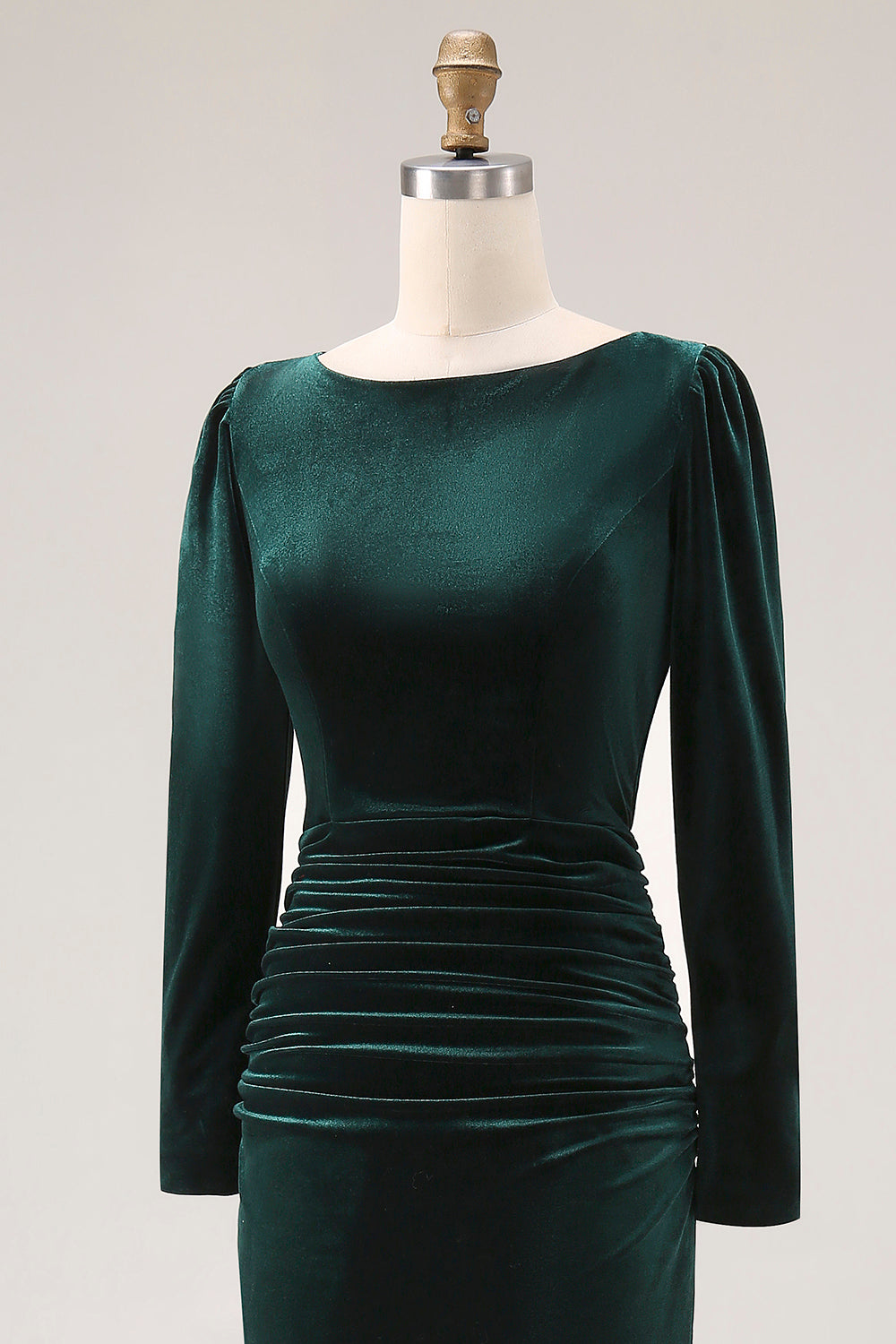 Dark Green Velvet Bodycon Ruched Midi Holiday Party Dress