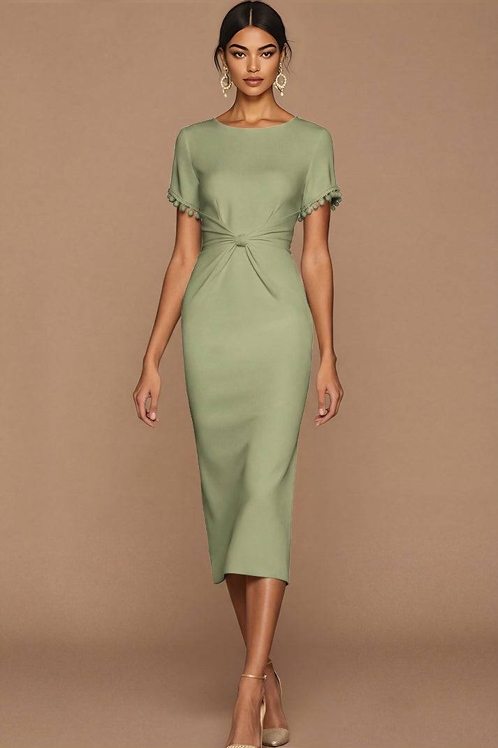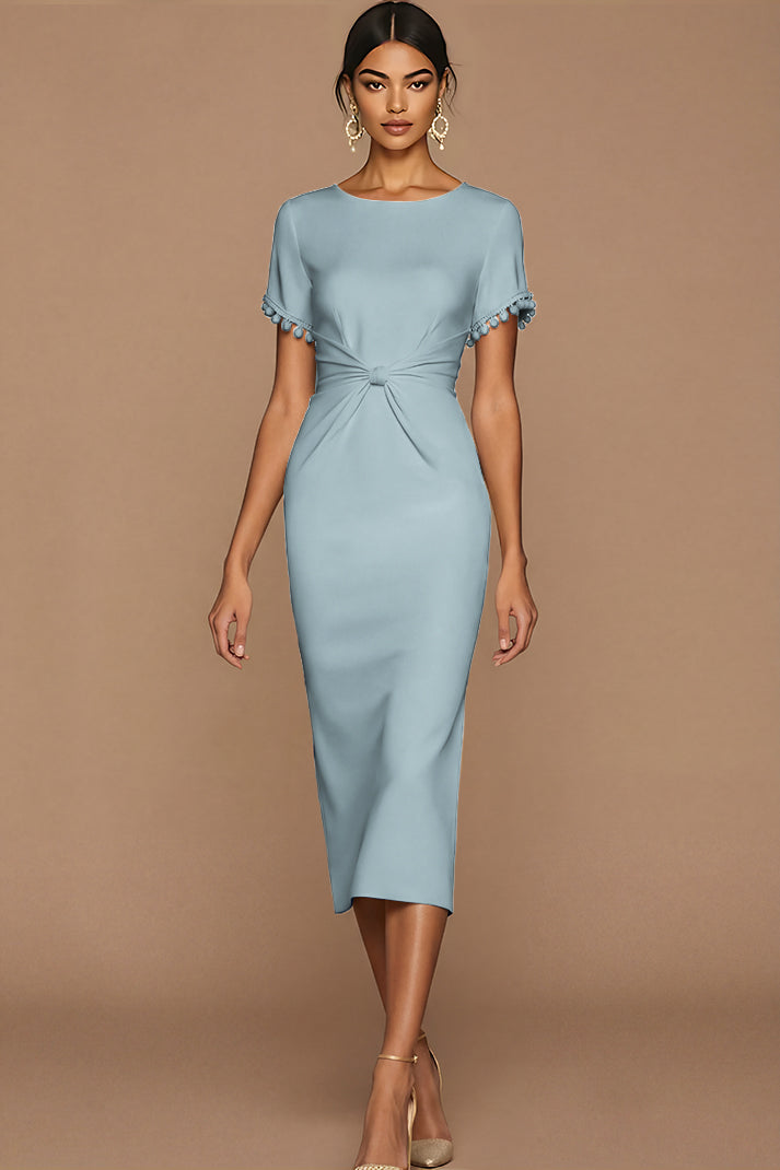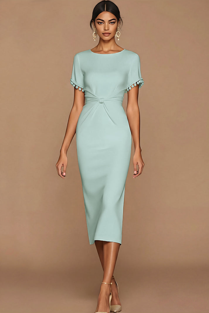 White Bodycon Jewel Neck Midi Wedding Reception Dress with Sleeves