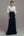 Chiffon Black and White V Neck Ruched Maxi Formal Dress with Sleeves
