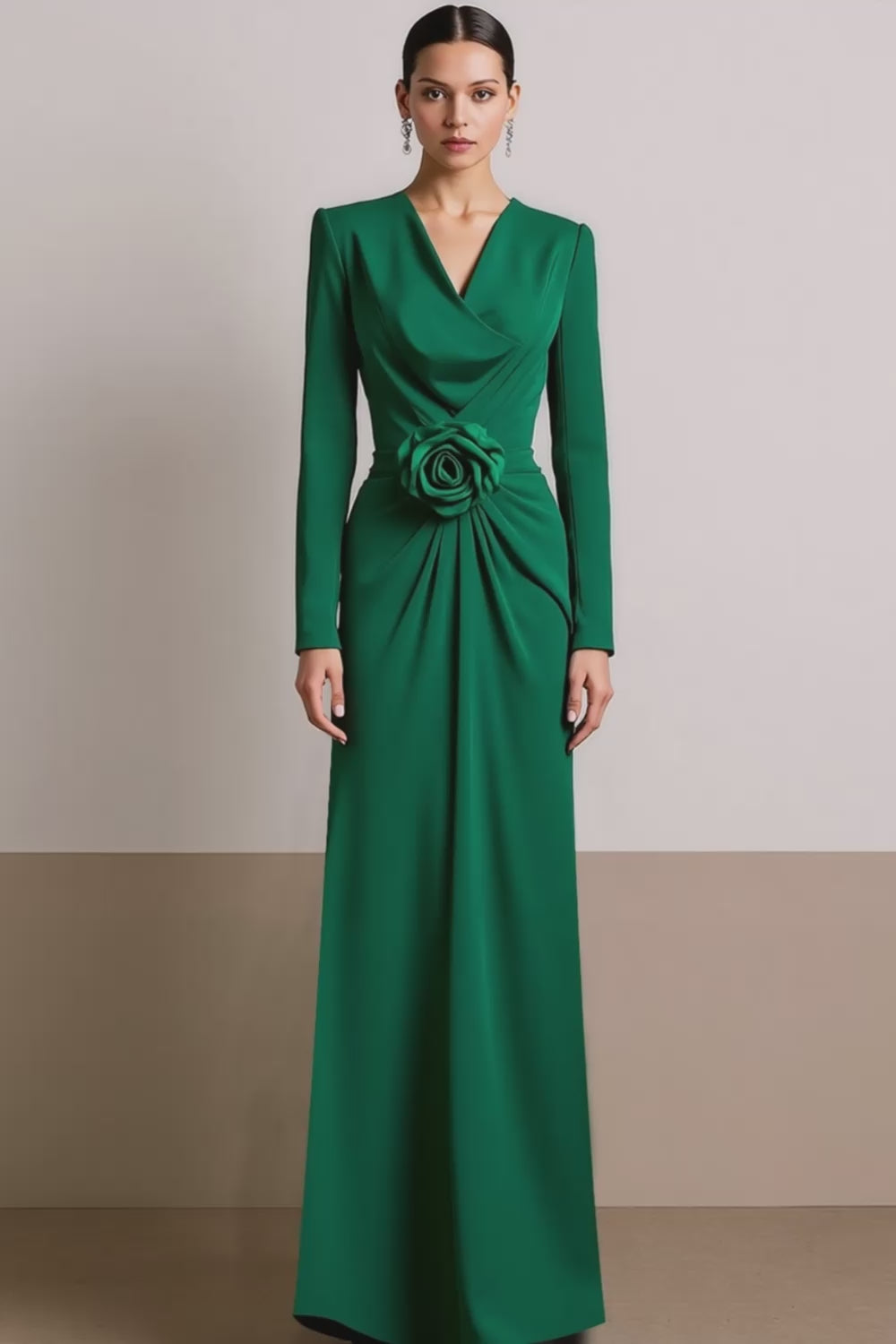 Green Long Sheath V-Neck Formal Dress with Flower