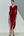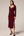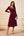 Burgundy Satin Neck Collar Sheath Midi Formal Dress with Sleeves