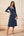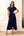 Navy Sheath Velvet Ruched Asymmetrical Neck Midi Formal Dress