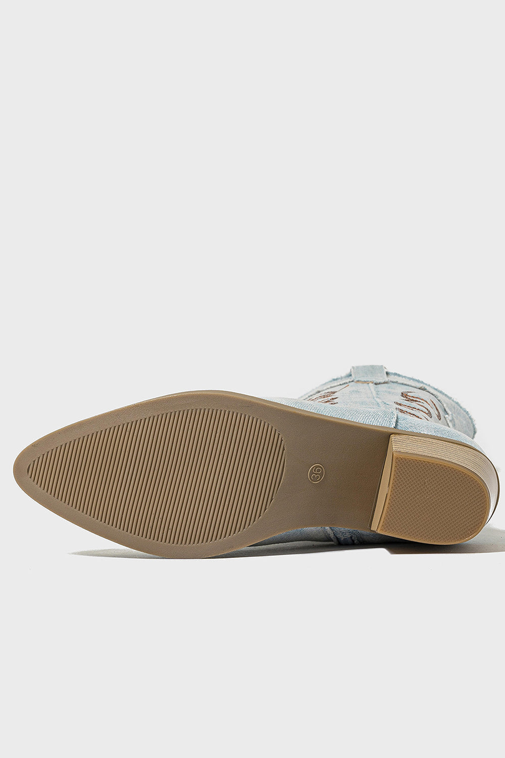 Dark Blue Mid Calf Embroidered Chunky Heel Cowgirl Boots