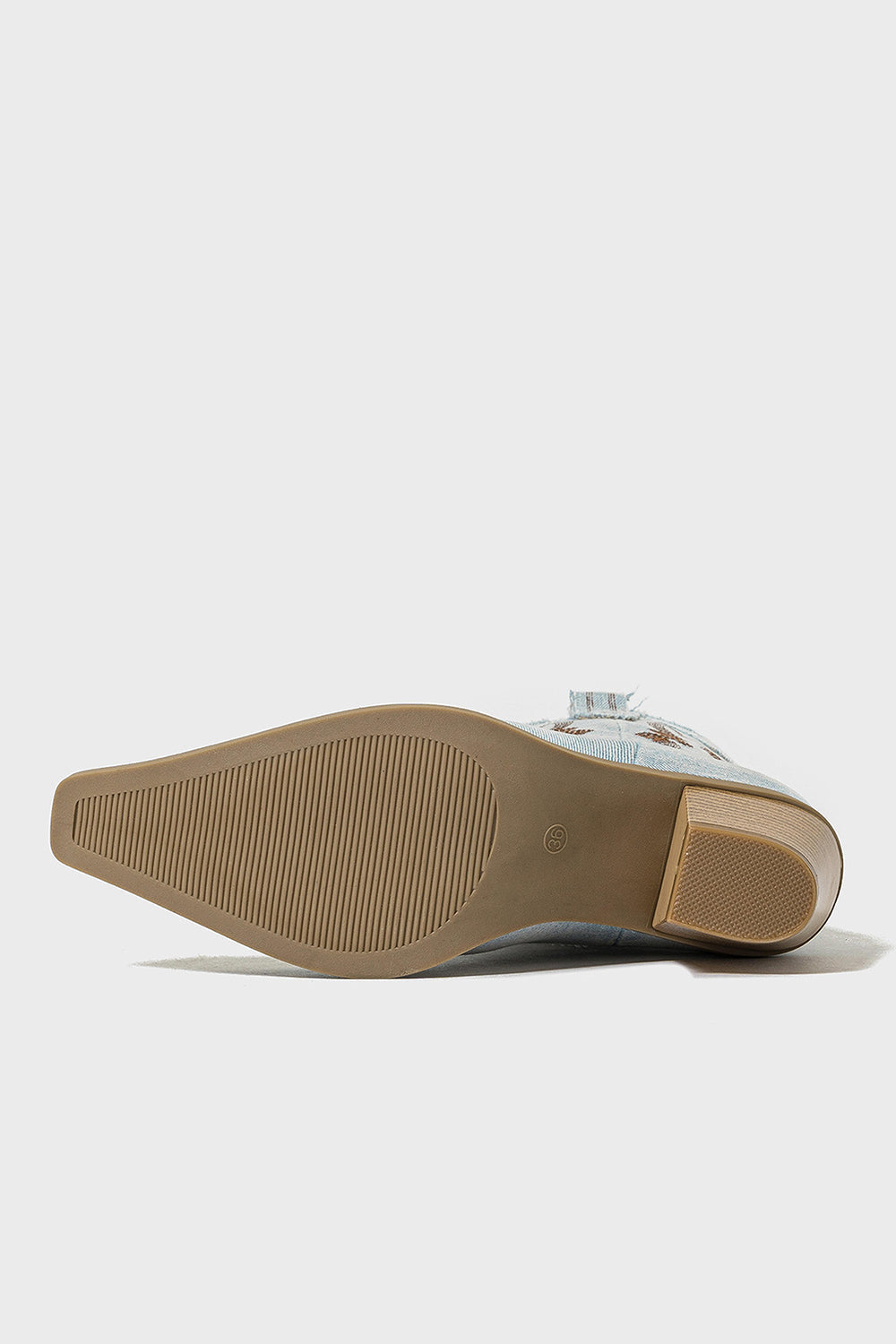 Light Blue Wide Calf Embroidered Chunky Heel Western Cowgirl Boots