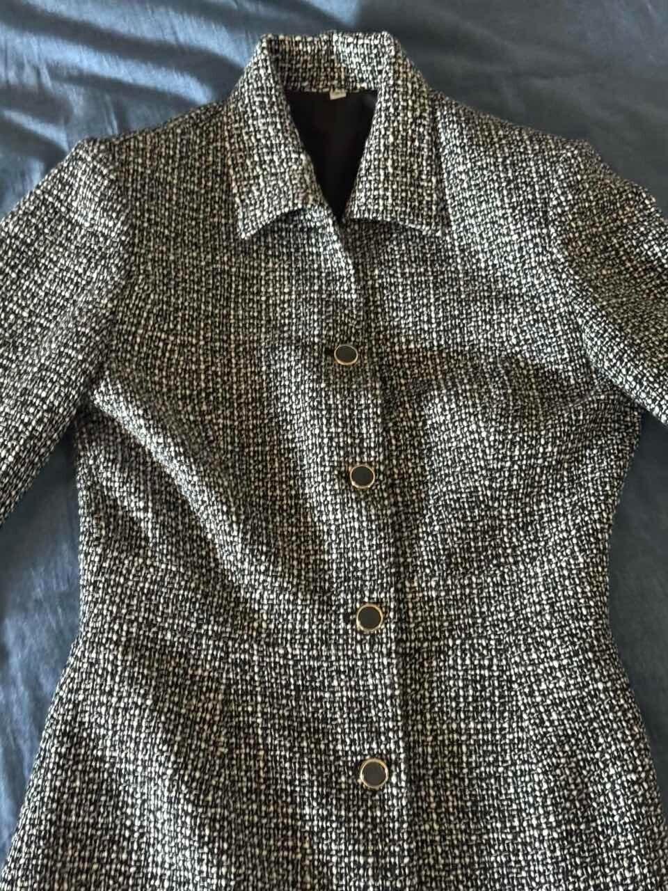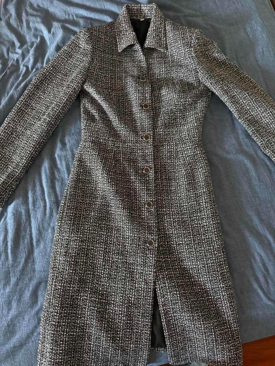 Features: High Quality Tweed Material, Collar Neck, Buttons Closure, Regular Fit, Long Sleeves