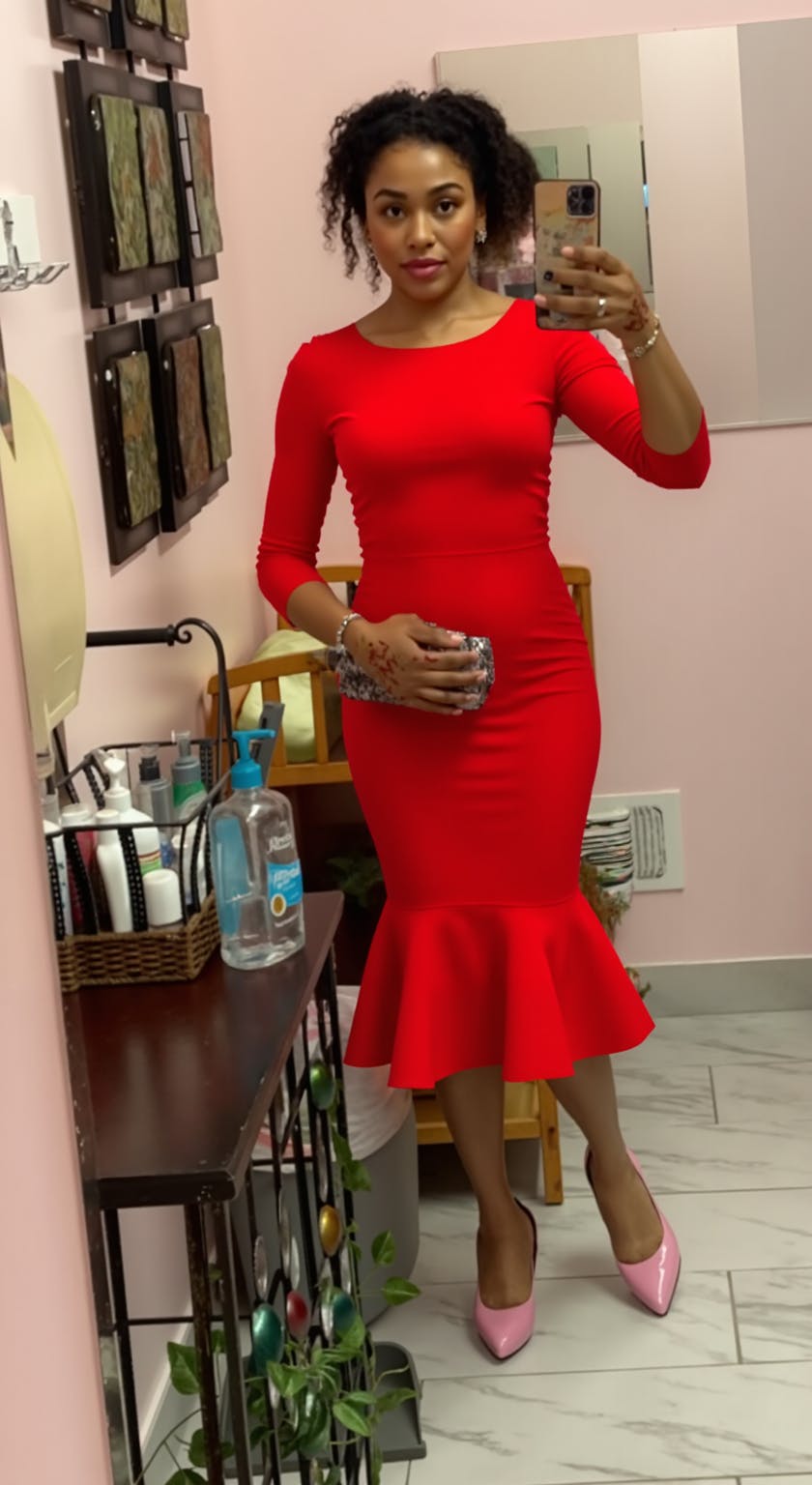 Elegant Midi Red Mermaid Long Sleeves Work Dress