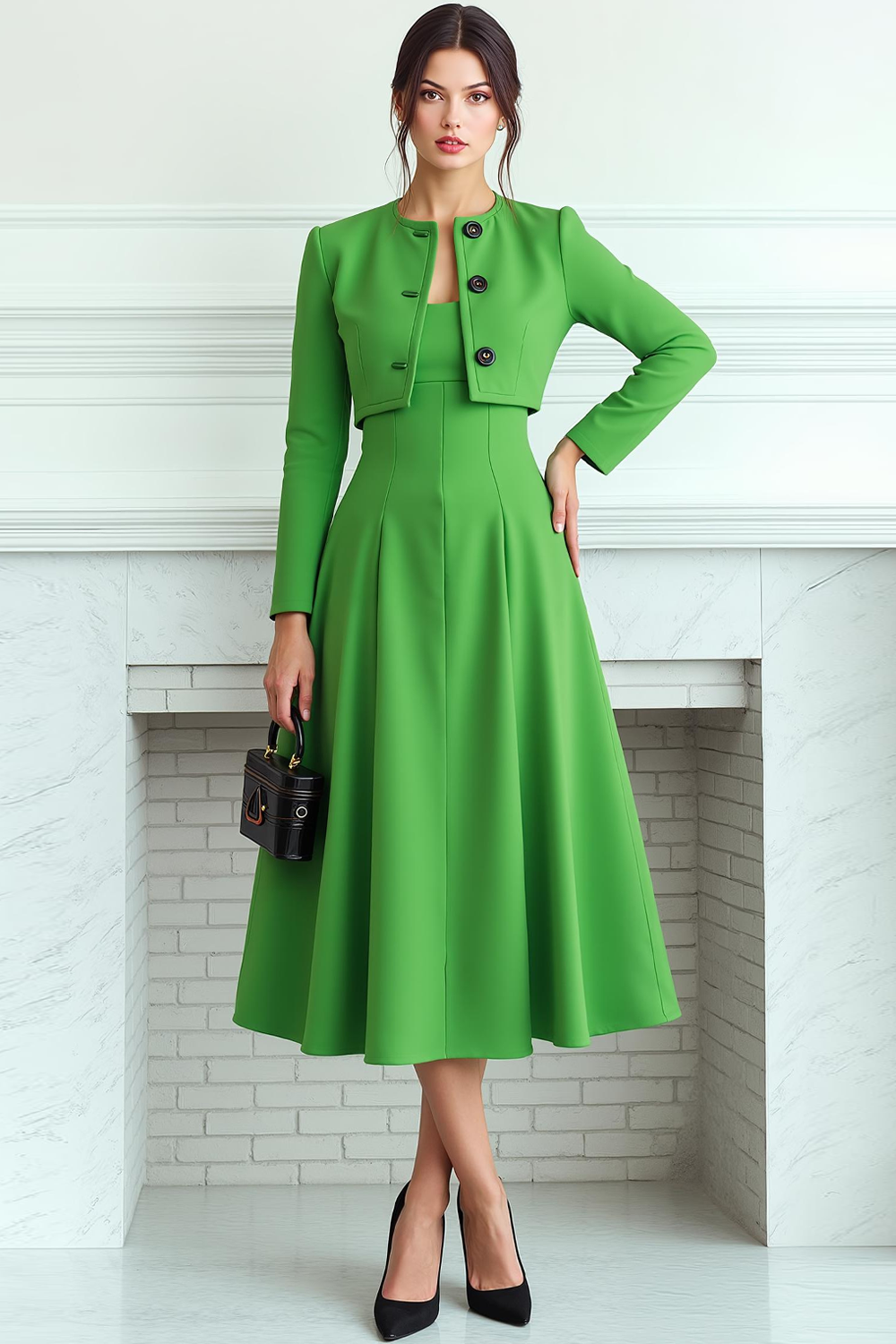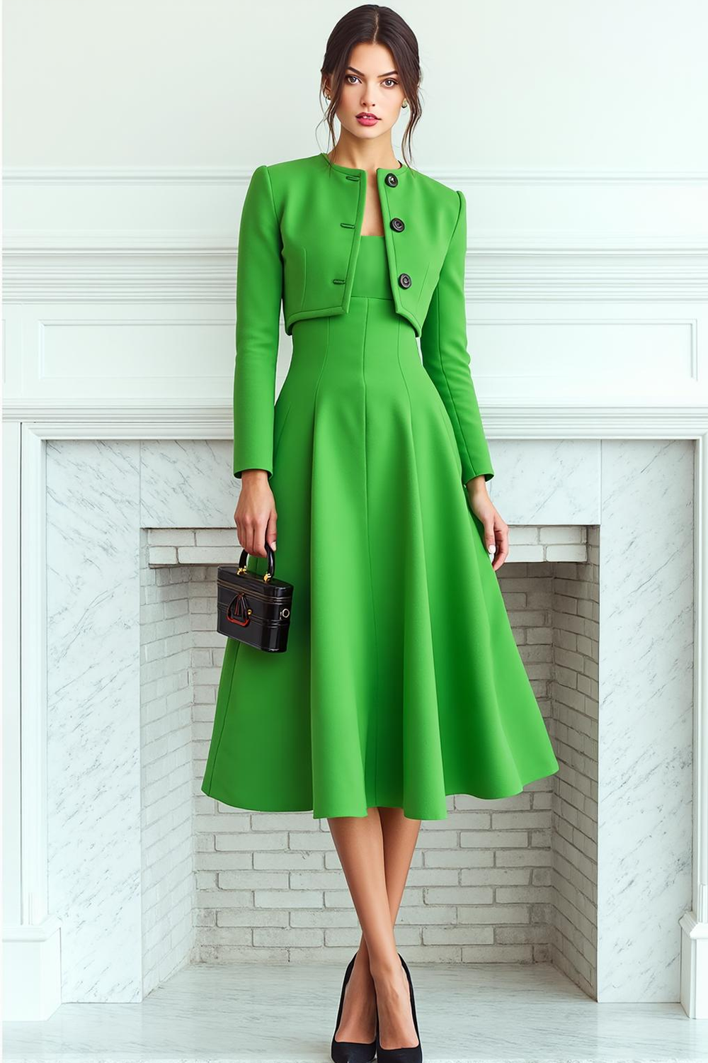 Fluorescent Green 2 Piece A Line Midi Business Suits