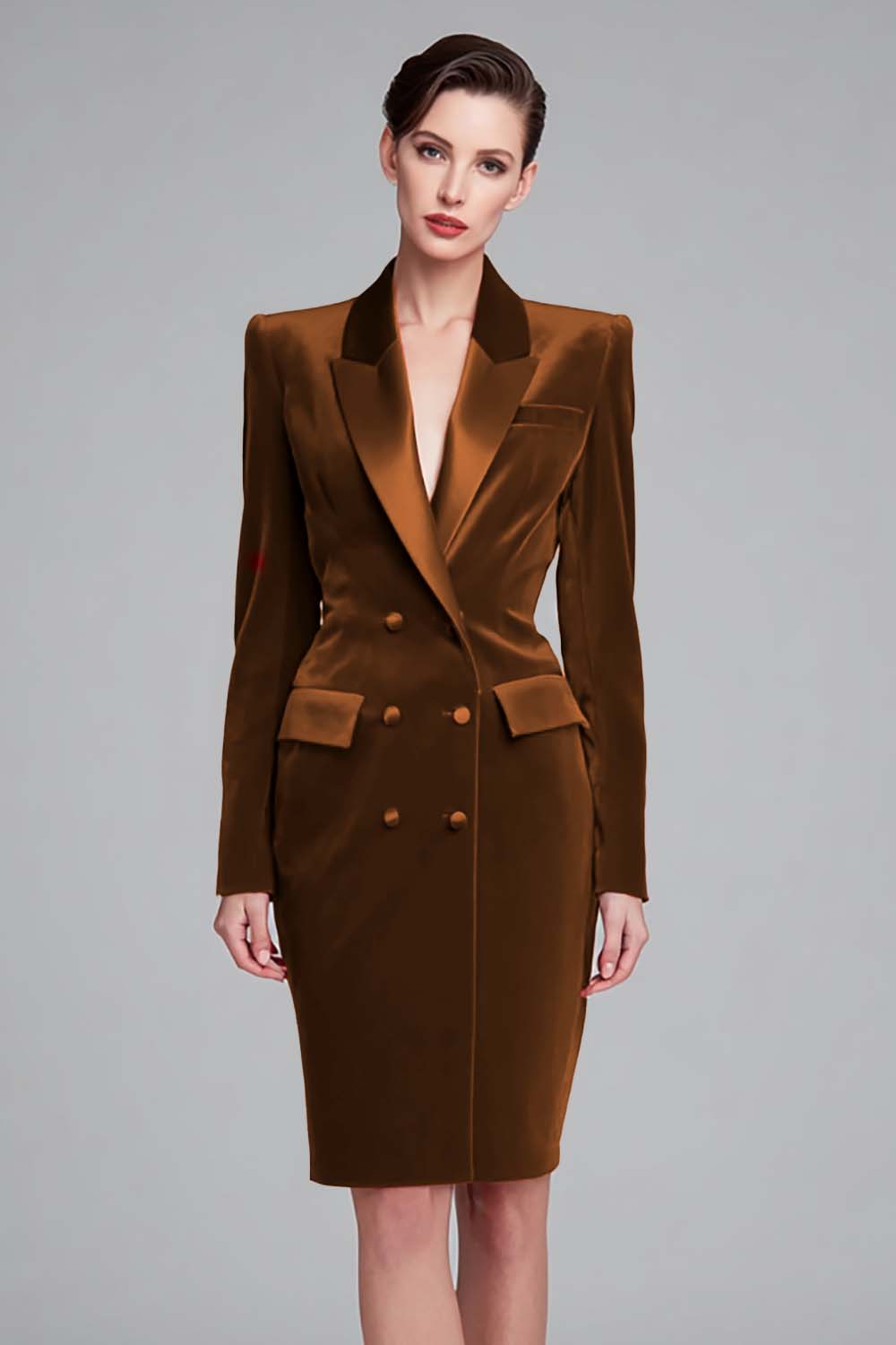 Red Peak Lapel Bodycon Velvet Double Breasted Short Blazer Dress