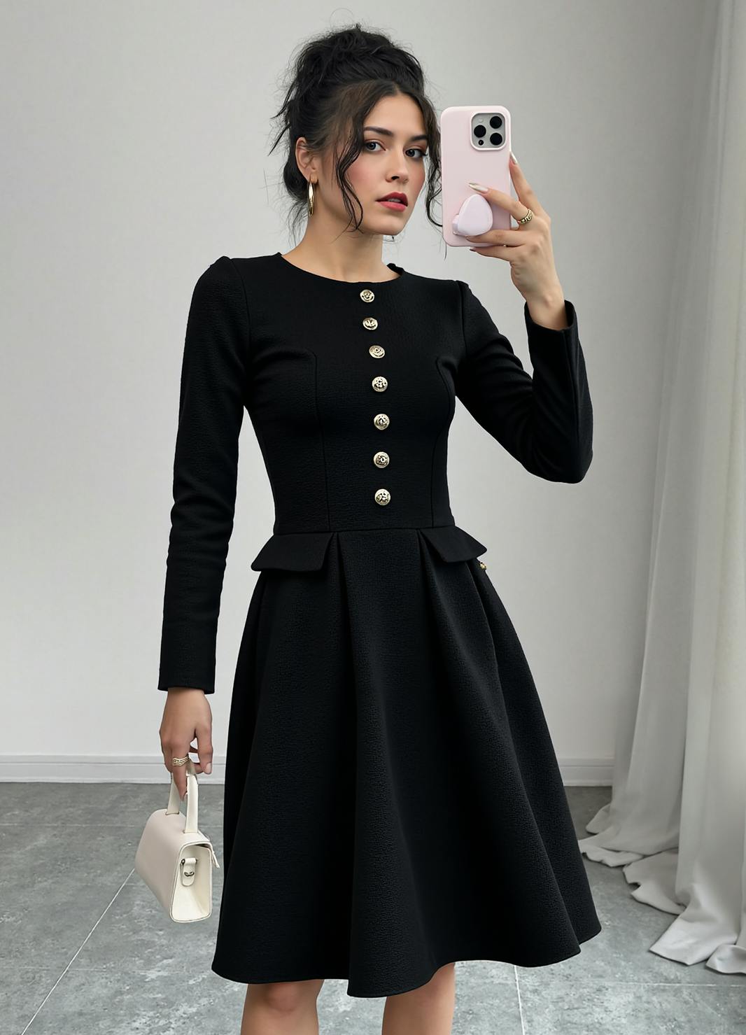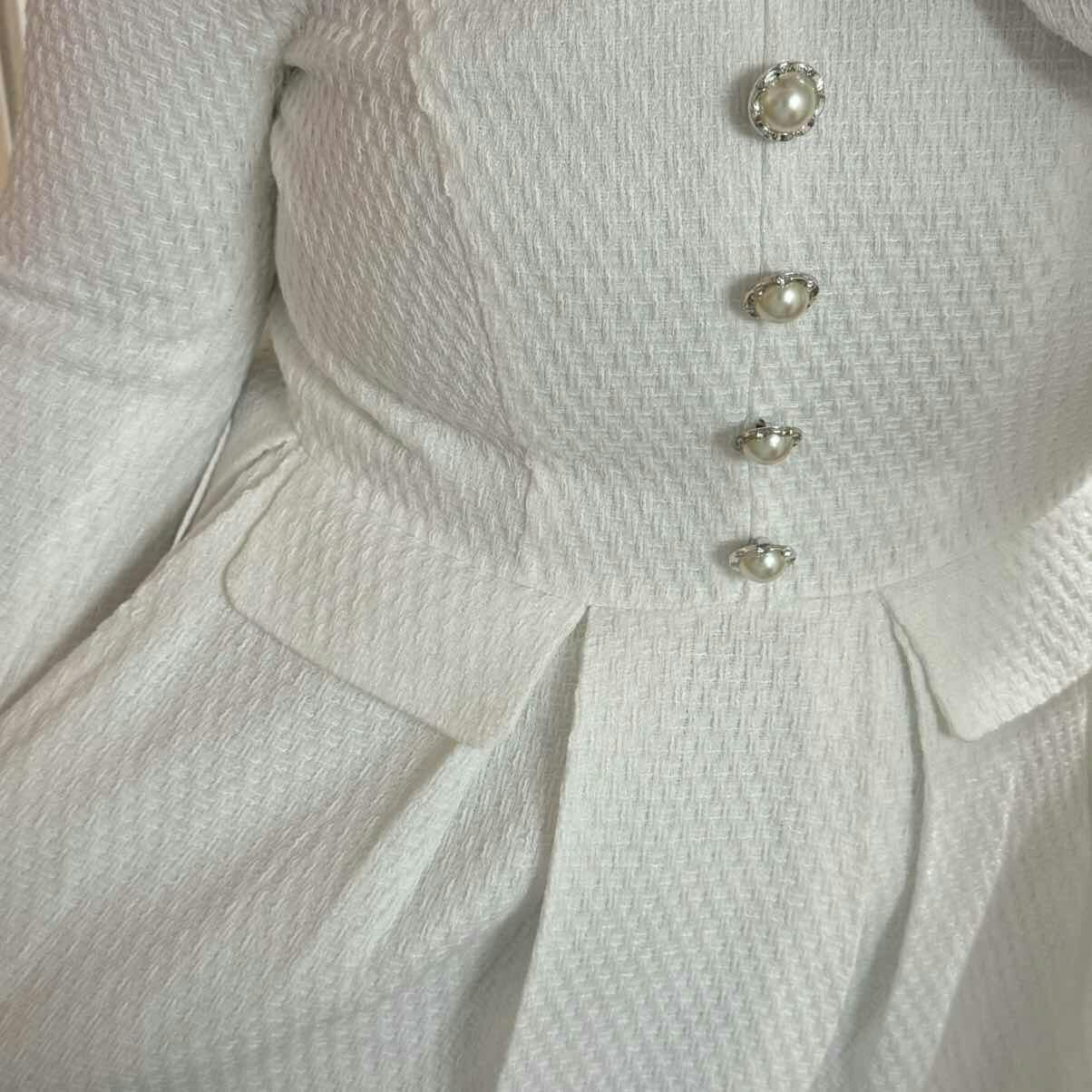 This tweed ivory midi dress blends timeless charm with everyday ease. Made from textured tweed, it offers a refined yet comfortable feel. The fitted bodice and flared skirt create a flattering silhouette, while long sleeves add warmth for cooler evenings. Side pockets bring a practical, casual touch. Perfect for date nights or daytime outings, this dress pairs effortlessly with heels or boots for a chic and versatile look.