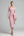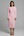 Pink Satin Pencil Round Neck Ruched Midi Work Dress with Sleeves
