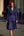 Navy Satin Pencil Half Sleeves Midi Work Dress with Sash