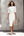 Ivory Satin Pencil Round Neck Half Sleeves Midi Work Dress with Slit
