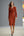 Midi Terracotta V-Neck Pencil Satin Work Dress with Slit