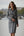 Navy and White Pencil Long Ruched Work Dress with Sleeves