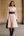 Pink Tweed Notched Lapel Long Sleeves Midi Work Dress with Belt