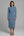 Blue Ruched Pencil V-Neck Long Work Dress with Sleeves