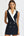 Black Tea Length V-Neck A Line Semi Formal Dress with Belt