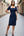 Navy A Line Midi Semi Formal Dress with Short Sleeves