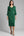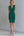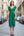 Green Satin Bodycon V Neck Ruched Midi Work Dress with Drape