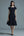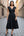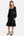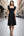 A Line Square Neck Black Satin Midi Work Dress with Ruffles