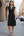 Black A Line Simple Satin Midi Work Dress with Long Sleeves