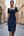 Navy Midi A Line Satin Work Dress with Short Sleeves