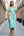 A Line Ruffled Mint Green Square Neck Midi Satin Work Dress