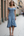V-Neck Blue Pleated Midi Work Dress with Strings