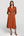 Orange Midi Satin V-Neck A Line Work Dress with Sleeves