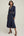 Navy Deep V-Neck Sheer Sleeves A-Line Long Work Dress
