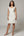 White Boat Neck A Line Midi Lace Work Dress with Sleeves
