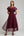 Burgundy Bateau A Line Maxi Lace Work Dress with Sleeves
