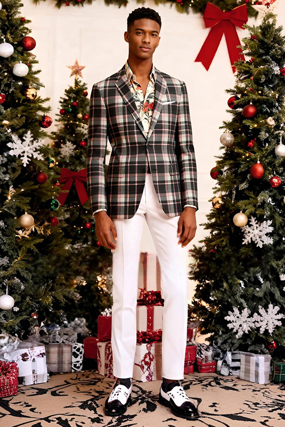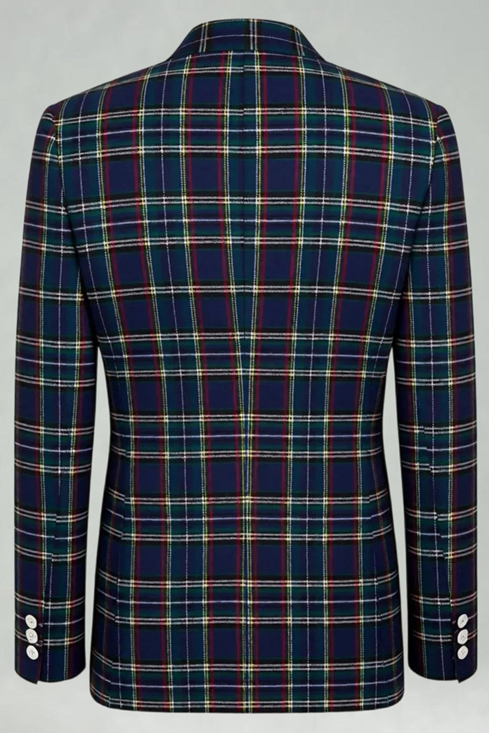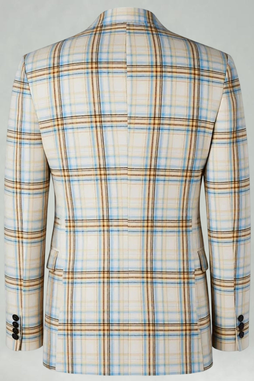 2 Piece Blue and Green Grid Notched Lapel Men Prom Suits