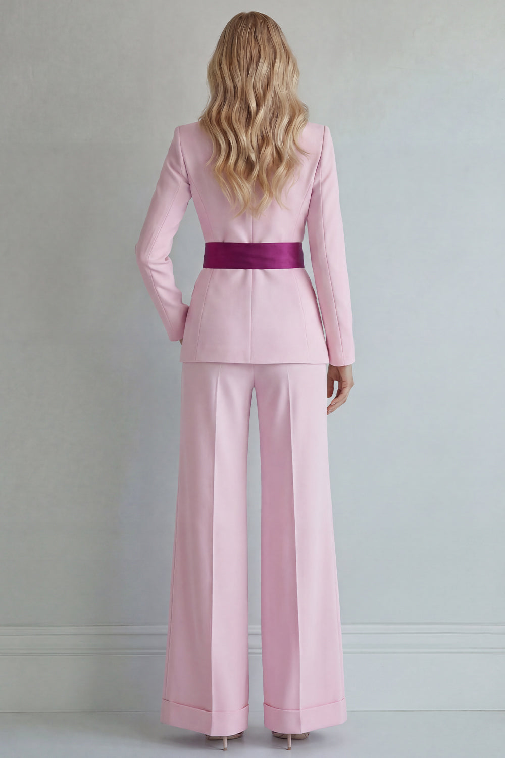 2 Piece Light Blue Single Breasted Peak Lapel Women Formal Suits with Bow