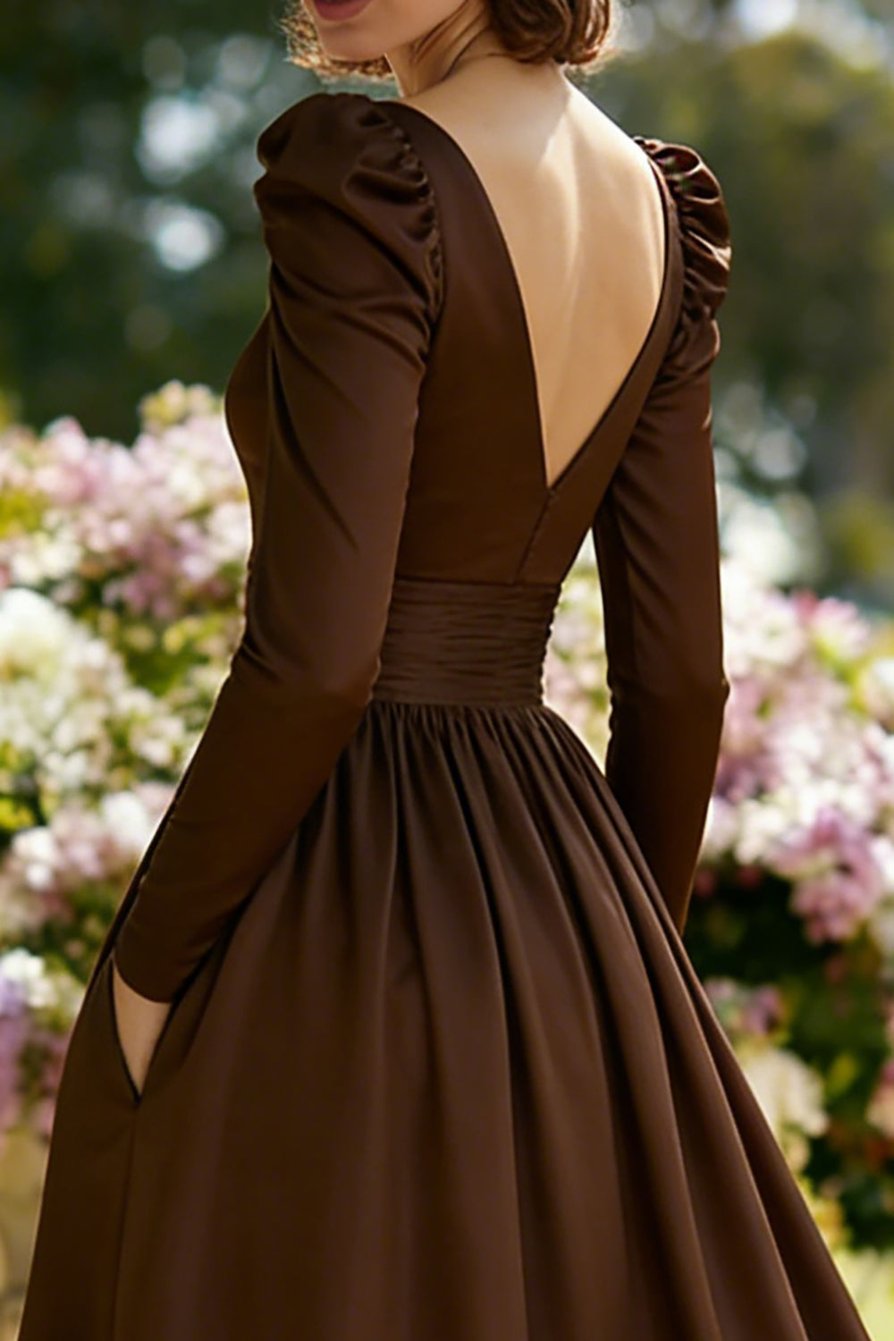 Brown V-Neck A Line Long Mother of the Bride Dress with Sleeves