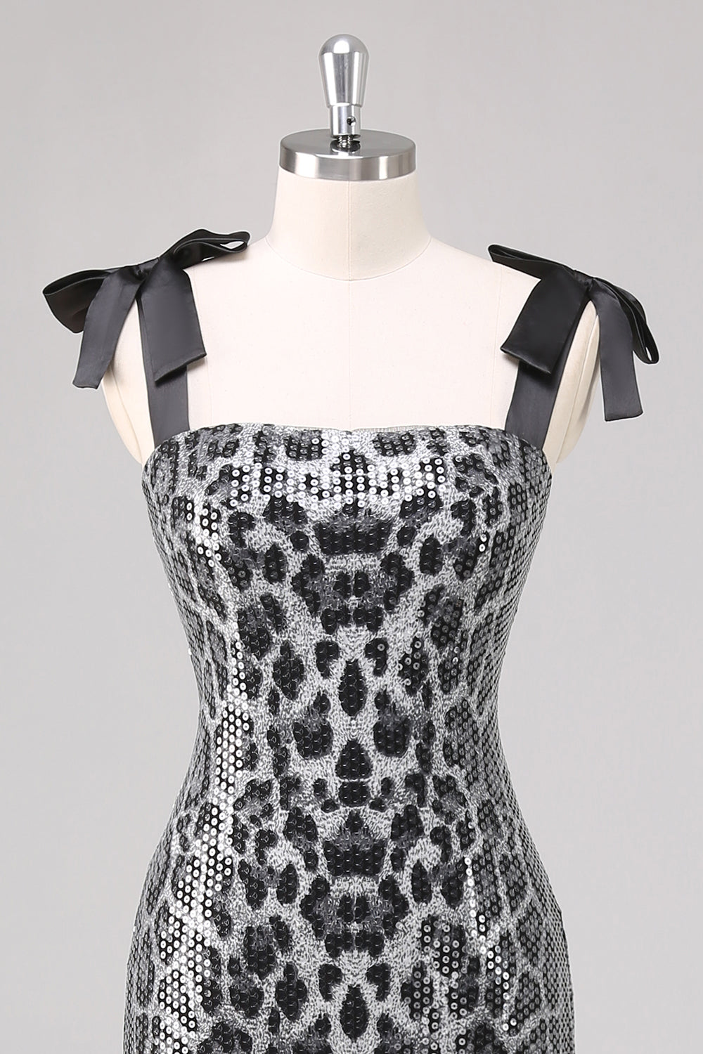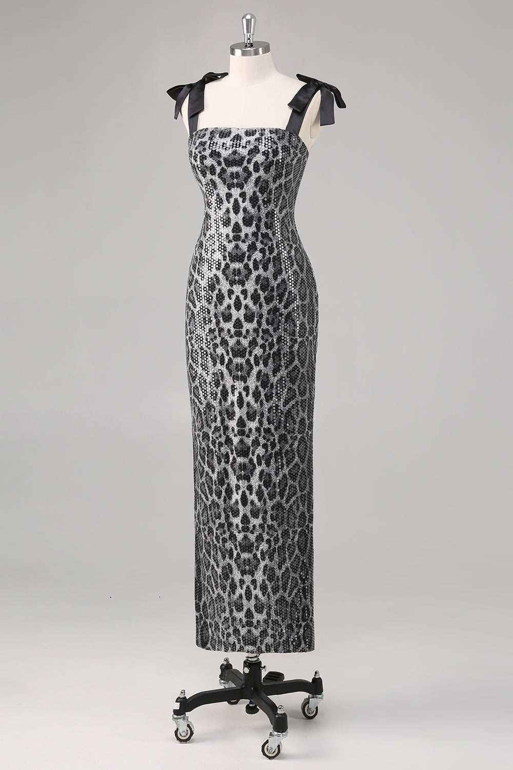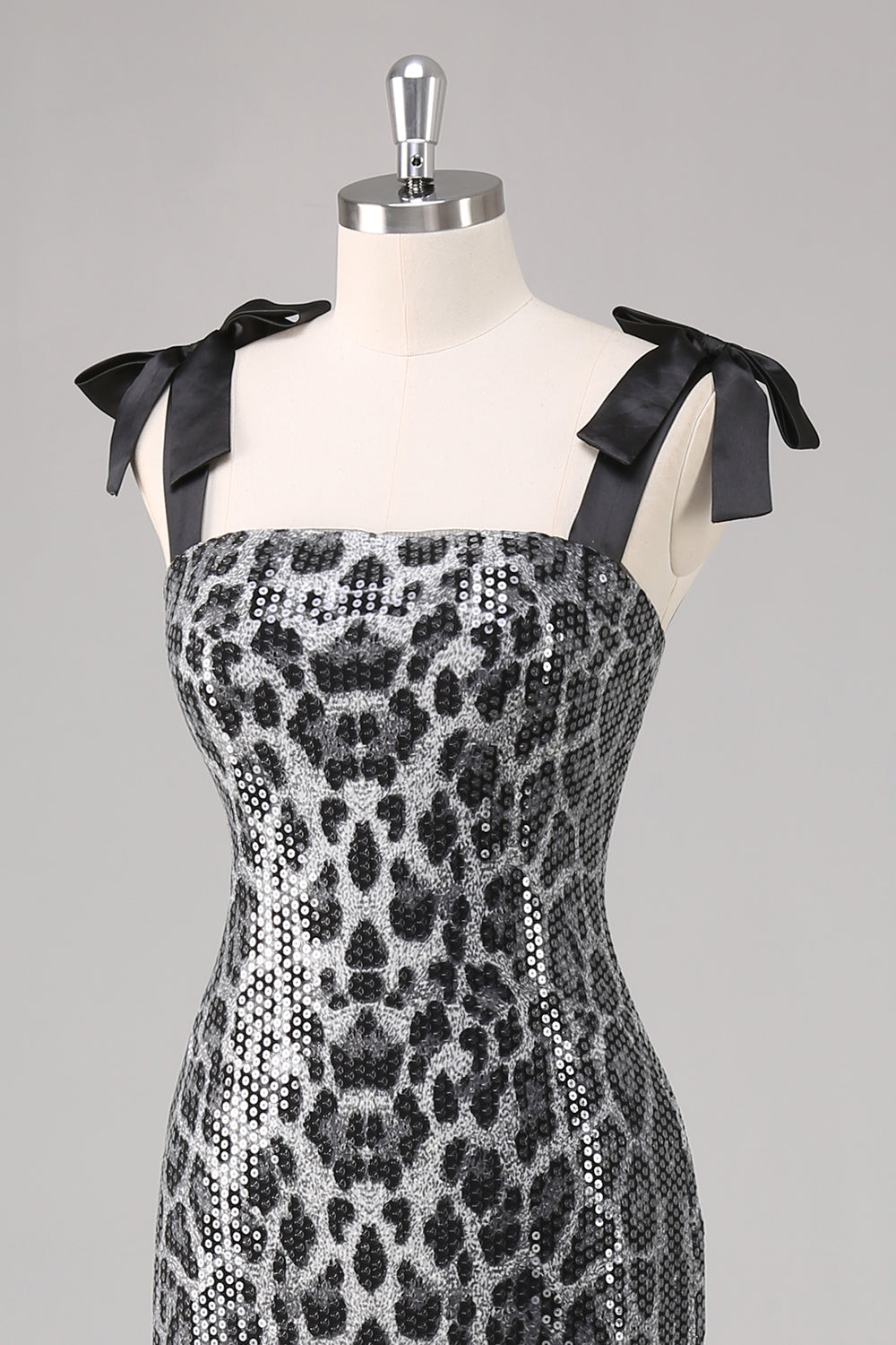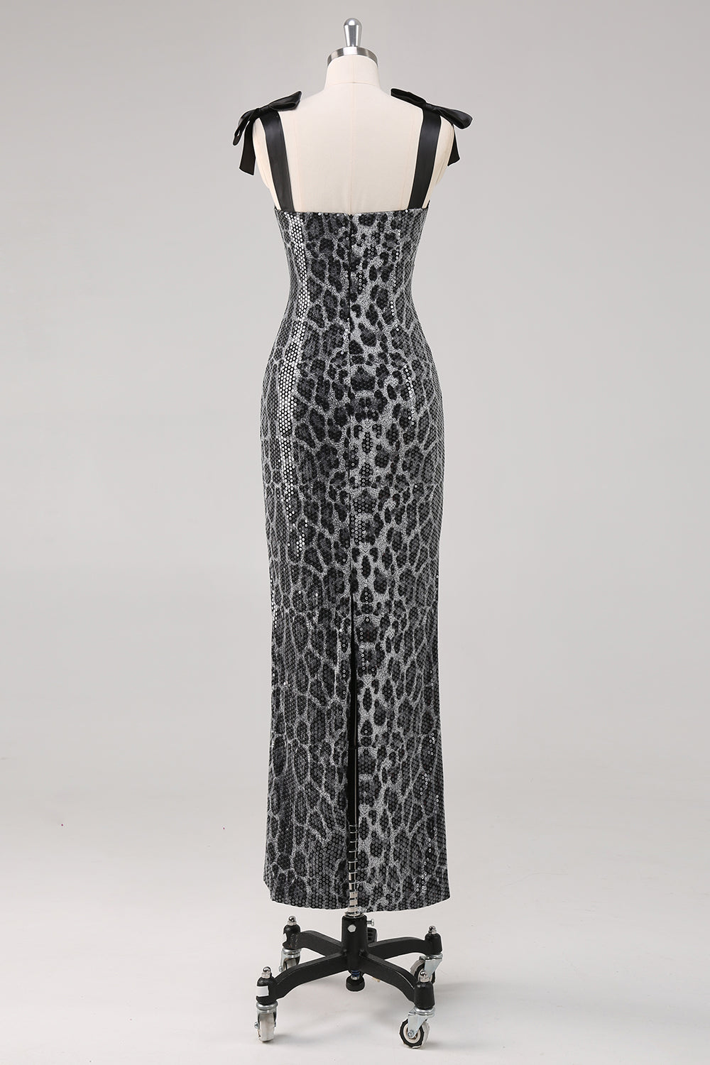Grey Leopard Sheath Printed Formal Dress with Bows
