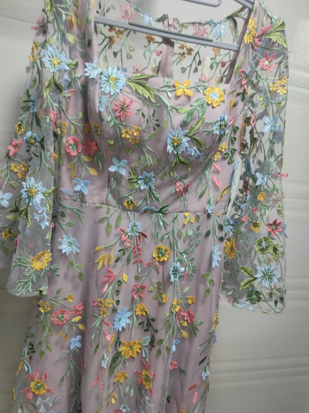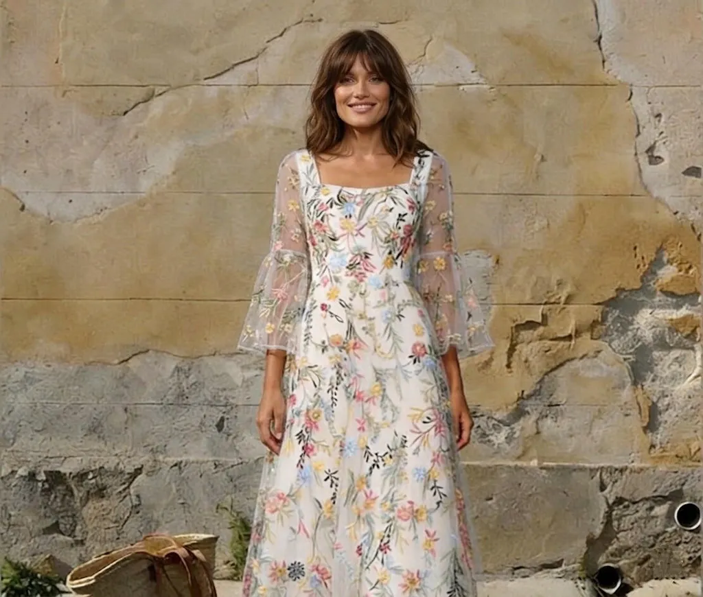This dress is a dreamy blend of romance and refined elegance, designed to make every special moment unforgettable. Light, airy flutter sleeves bring a soft, graceful touch, offering just the right amount of coverage without sacrificing elegance. The flowing long skirt cascades beautifully to the floor, enhancing the dress’s ethereal feel and making it perfect for prom, formal evenings, or special celebrations. Thoughtfully designed with both comfort and style in mind, this gown pairs exquisite detailing with a wearable, confidence-boosting fit.