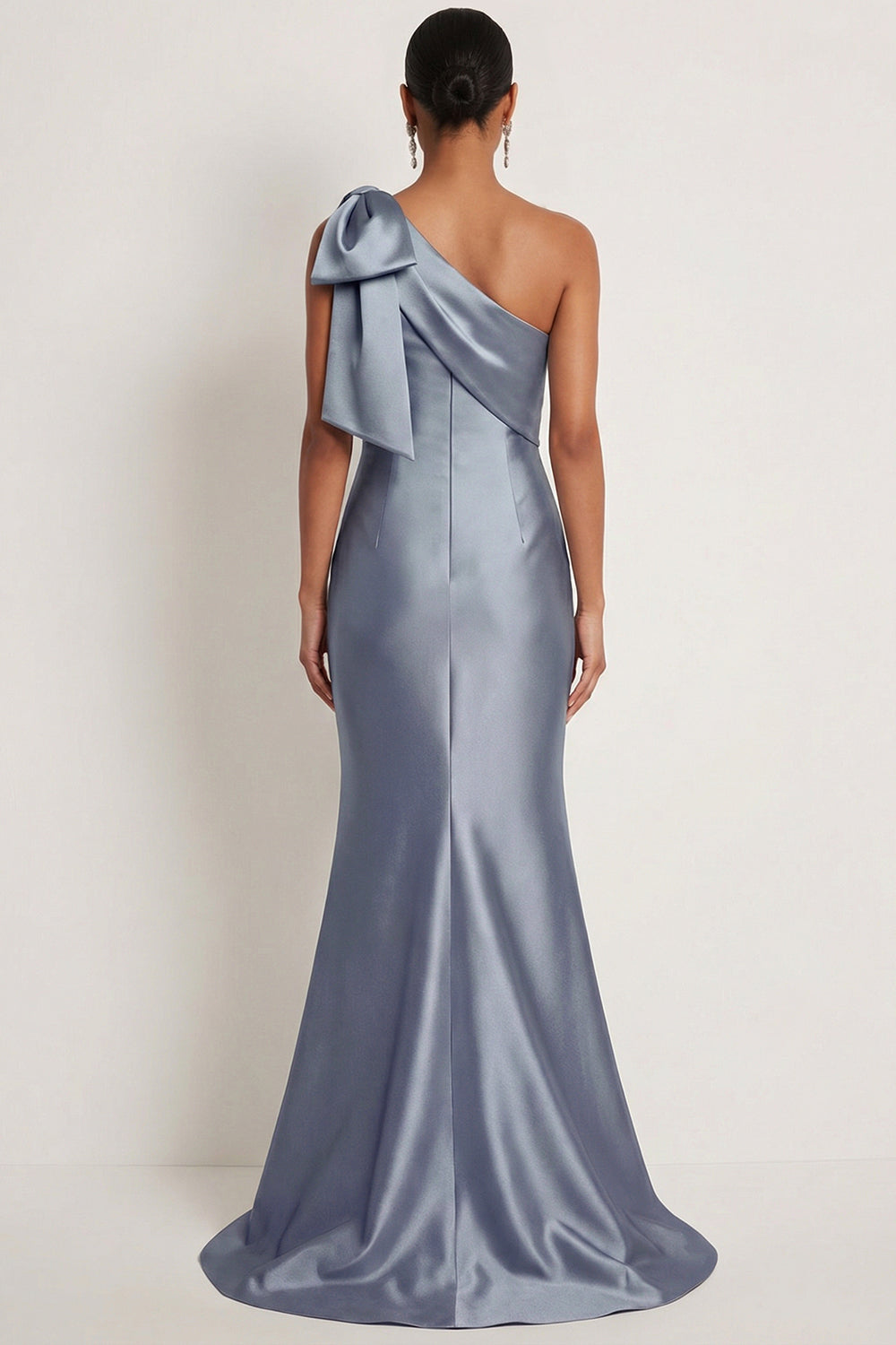 One Shoulder Satin Grey Blue Mermaid Long Gala Dress with Bow