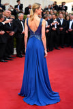 Royal Blue A Line V-Neck Floor Length Formal Dress with Sequins