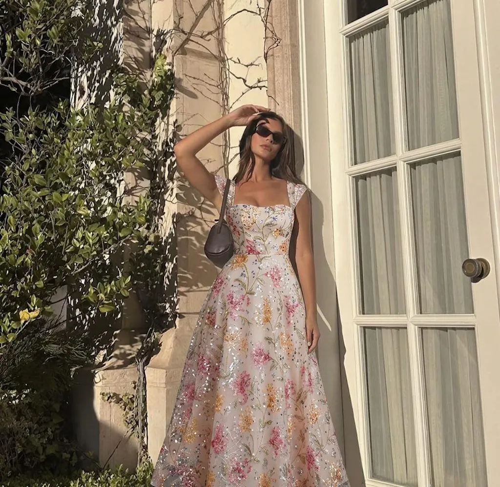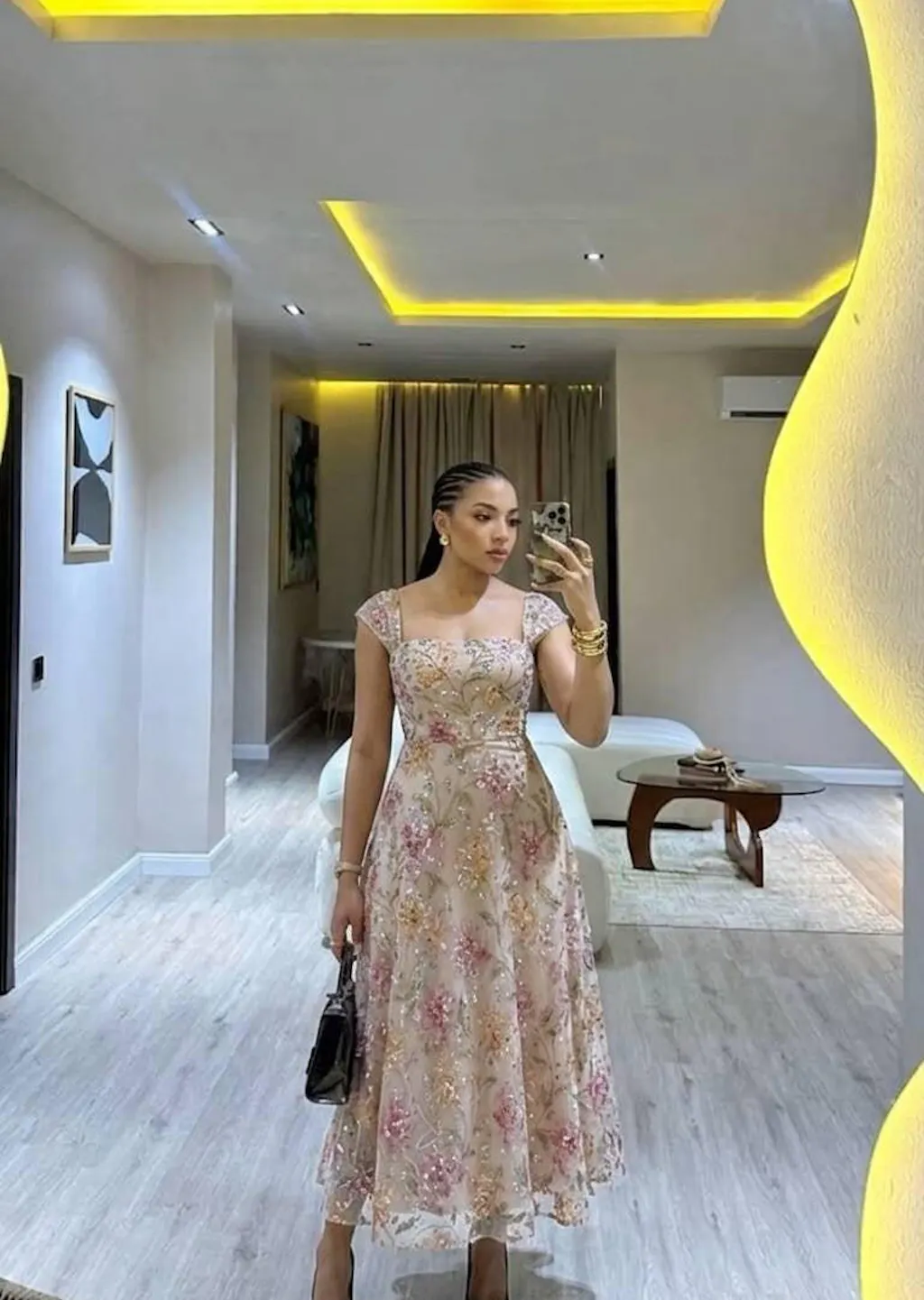 This dress is a breathtaking gown designed to capture attention with its romantic sparkle and elegant silhouette. The fitted bodice highlights the natural waistline, while the classic A-line skirt gently flows to the floor, offering a graceful and flattering shape that suits a variety of body types. As the skirt moves, the sparkling embellishments catch the light from every angle, making the dress ideal for galas, formal parties, prom nights, or elegant celebrations. Combining romantic charm with sophisticated glamour, this gown brings together timeless elegance and modern sparkle.