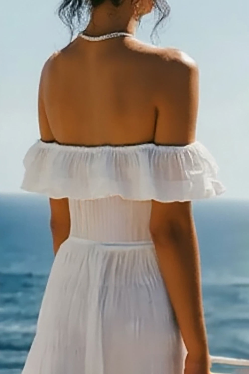 White Off The Shoulder A Line Floor Length Graduation Dress